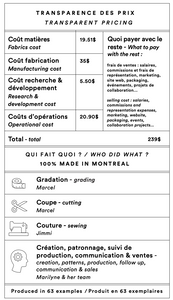 Je n'ai que des éloges sur la qualité de la robe achetée chez Marigold. Le tissus est léger et confortable, et la coupe est flatteuse ; probablement l'un des plus beaux morceaux de linge de ma garde-robe! Le prix est 100% justifié, surtout qu'il est détaillé de manière très transparente sur le site web. Longue vie à la mode éthique et locale! <3
